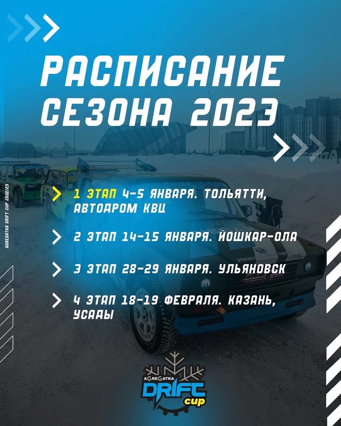 Ну, а пока сохраняйте локации, даты и планируйте лучшие выходные нового года - дрифтовые!